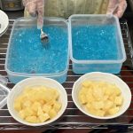下段の白い部分はカルピス味になっています。上段の水色部分はブルーハワイ味になっています。