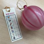 ヒモの先には、おみくじと職員の顔が貼ってあります。