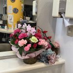 ピンクのスイトピーをポイントにピンク系のカーネーションを集めてアレンジしました。