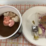 おやつは「バレンタイン」ならではのホットチョコレートココアにマシュマロを浮かべて。