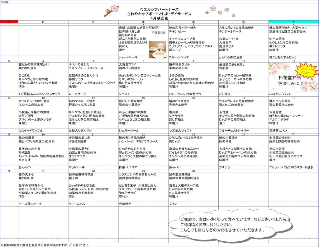 4月の献立が出来ました!