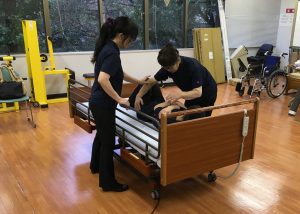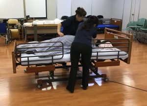 杖歩行、車いすなどの基本介助の他、ビニールシートを使っての水平移動も行いました![]()