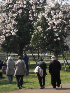 「綺麗な公園ねぇ。桜がきれいねえ。」と桜の枝を手にとって楽しまれています。