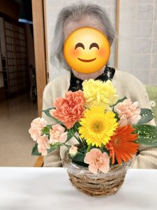 今回はフラワーアレンジメントのお仲間が増え、お花をされているところと完成されているひとこまを掲載しています。お家に飾りご家族も喜ばれているとの事でした。