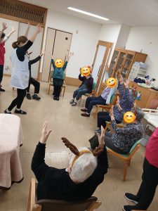 クリスマス会で体操交えて歌を唄い楽しまれた1コマを掲載しました