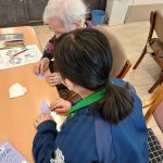 「昔を思い出すわね」「どうやって折るのかしら?」と中学生にお手伝いしてもらいながら取り組まれていました。